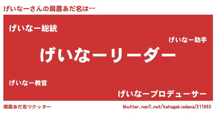 | 女子向けラノベタイトル風あだ名 | 『げいなーは平凡を望む』 |