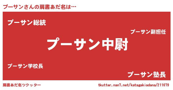| 意味不明あだ名 | 『たけのこ科プーサン属』『自称プーサン』 |