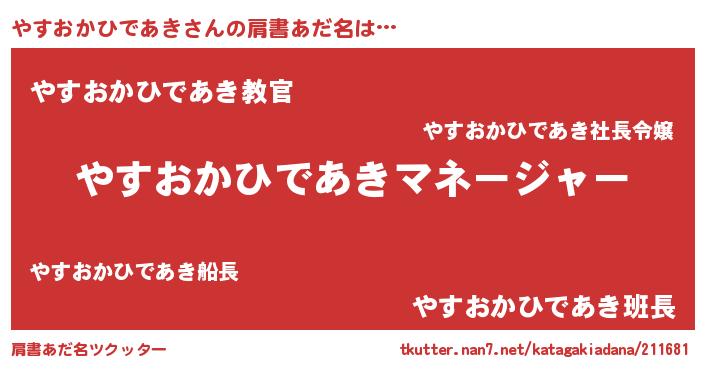 | 意味不明あだ名 | 『住所不定無職やすおかひであき(11歳)』 |