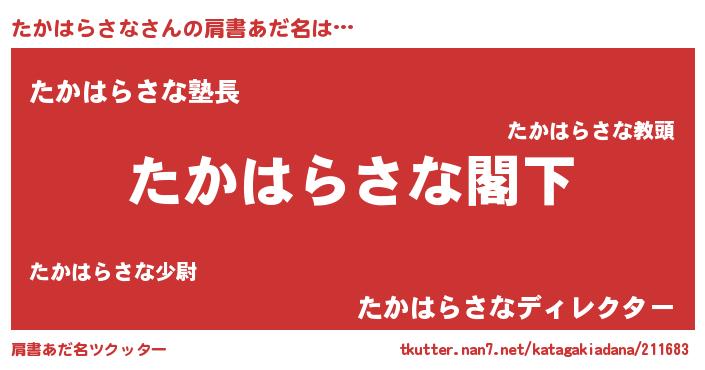 | 意味不明あだ名 | 『自称たかはらさな』 |