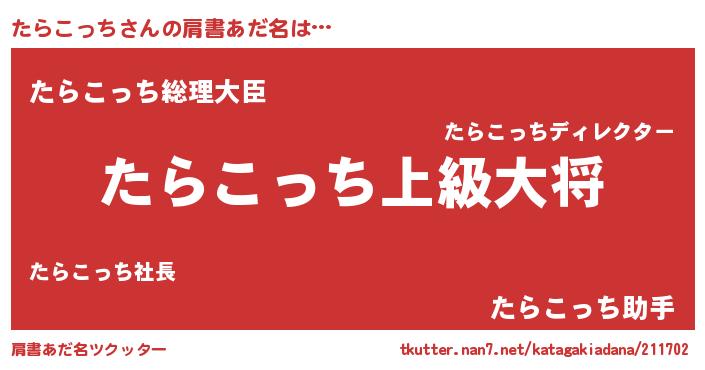 | ヒーロー風カッコイイあだ名 | 『ウルトラたらこっちマン』 |