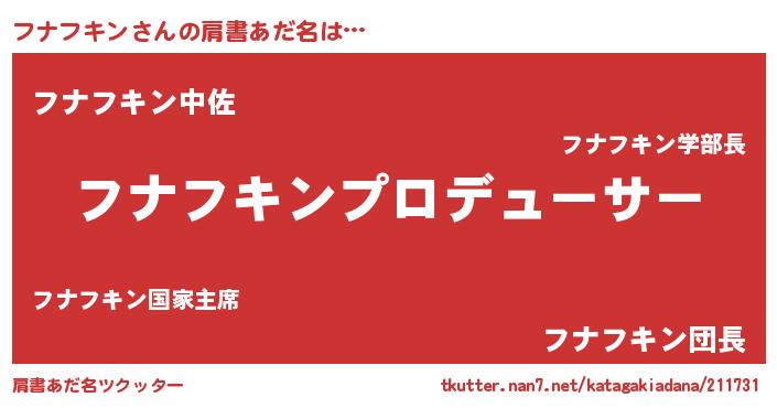 | ヒーロー風カッコイイあだ名 | 『幻影騎士フナ』『愛の使者フナフキン』 |