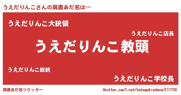 | 男性向けラノベタイトル風あだ名 | 『うえだりんこという概念が存在しない退屈な世界 』 |