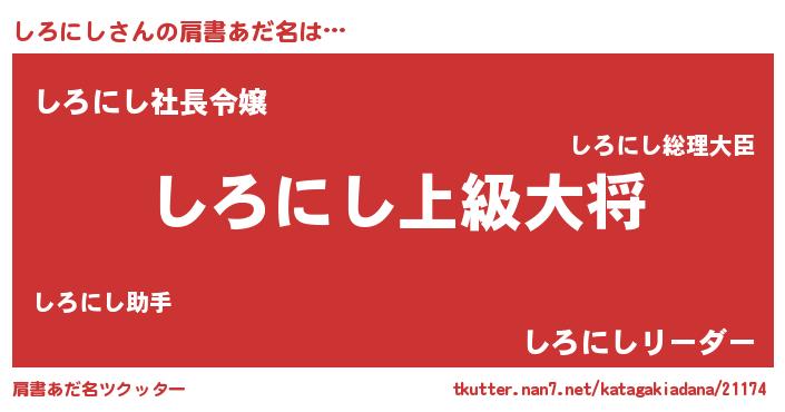 | 胡散臭い通販商品みたいなあだ名 | 『億万長者になれる霊験あらたかなお札…その名も「しろにし」』 |