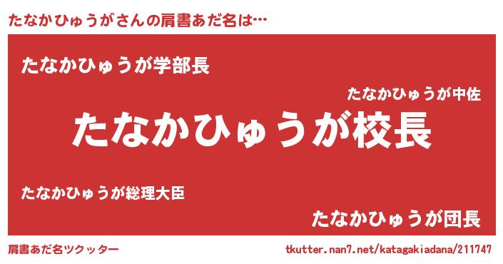 | ヒーロー風カッコイイあだ名 | 『ネオタナカヒュウガ』『黄金騎士タナ』 |