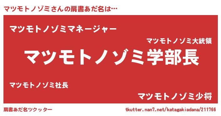 | ヒーロー風カッコイイあだ名 | 『慈愛の使者マツモトノゾミ』 |