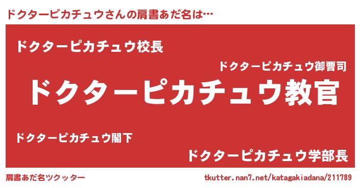 | 意味不明あだ名 | 『住所不定無職ドクターピカチュウ(89歳)』 |