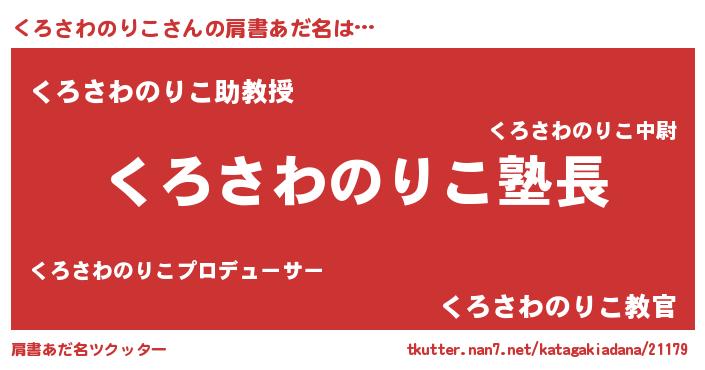 | 男性向けラノベタイトル風あだ名 | 『くろさわのりこの嫁は女の子じゃないと思った?』 |