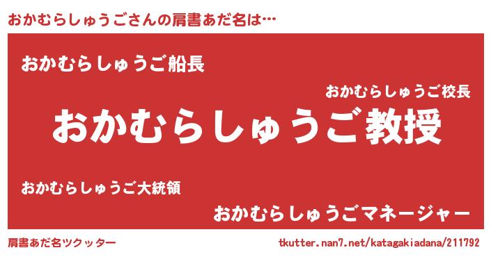 | 男性向けラノベタイトル風あだ名 | 『ノーゲーム・ノーオカムラシュウゴ』 |