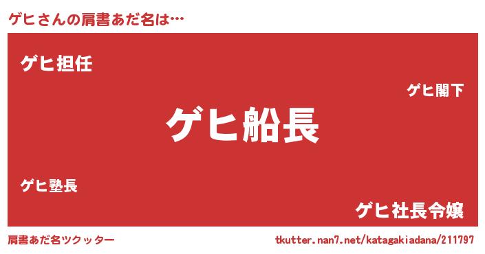 | ヘコむあだ名 | 『ゲヒ(笑)』『ゲヒもー』『ゲヒっぺ』 |