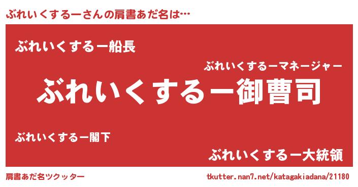 | 男性向けラノベタイトル風あだ名 | 『ぶれいくするーの憂鬱』 |
