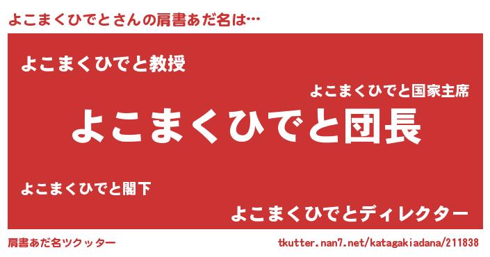 | 意味不明あだ名 | 『とにかく怪しいよこまくひでと』 |