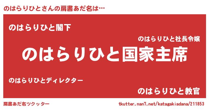 | 恥ずかしいあだ名 | 『のはっちょ』『ノハラリヒトデラックス』 |