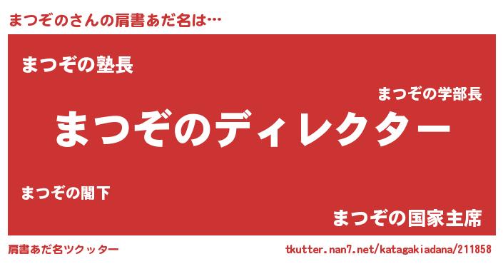 | 男性向けラノベタイトル風あだ名 | 『まつぞのに滅ぼされるだけの簡単なお仕事です』 |