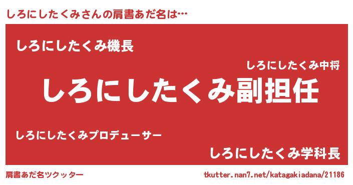 | ヘコむあだ名 | 『しろにしたくみ(遠い目)』『しろもー』 |