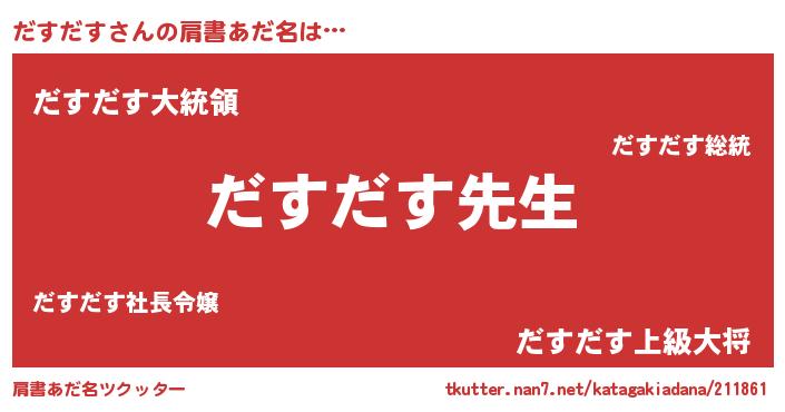 | ヒーロー風カッコイイあだ名 | 『ネオダスダス』『ウルトラだすだすマン』 |
