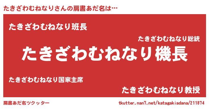 | 男性向けラノベタイトル風あだ名 | 『緋弾のタキザワムネナリ』 |