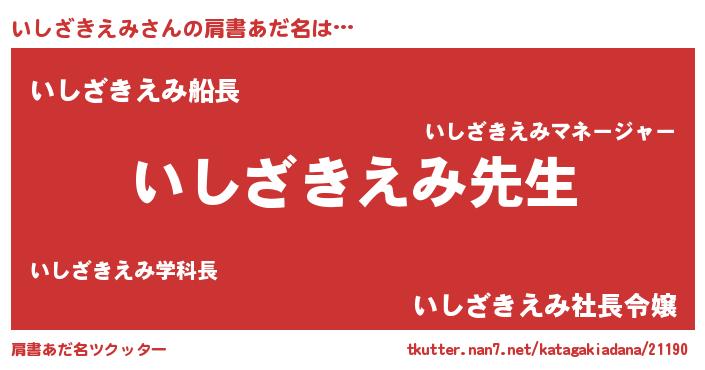 | 男性向けラノベタイトル風あだ名 | 『いしざきえみという概念が存在しない退屈な世界 』 |