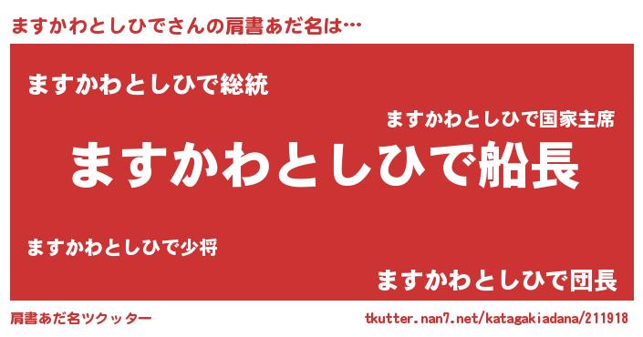 | 意味不明あだ名 | 『自称ますかわとしひで』 |