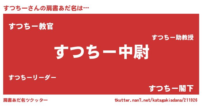 | 男性向けラノベタイトル風あだ名 | 『すつちー~年齢イコール彼女いない歴の魔法使い~』 |