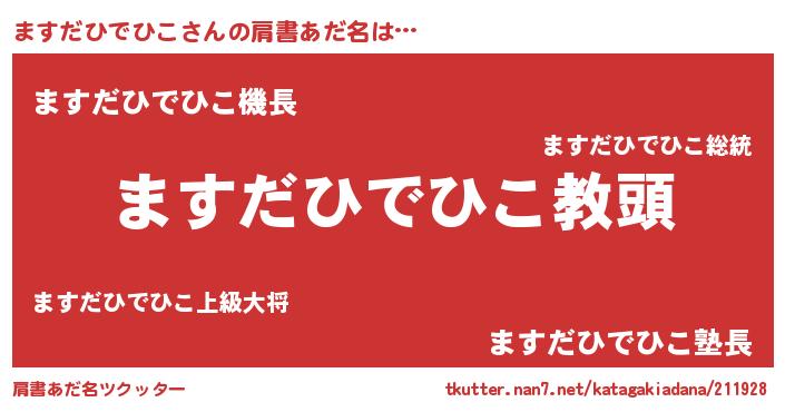 | 男性向けラノベタイトル風あだ名 | 『ますだひでひこという概念が存在しない退屈な世界 』 |