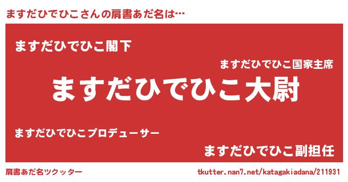 | 女子向けラノベタイトル風あだ名 | 『ますだひでひこの玉の輿計画!』 |
