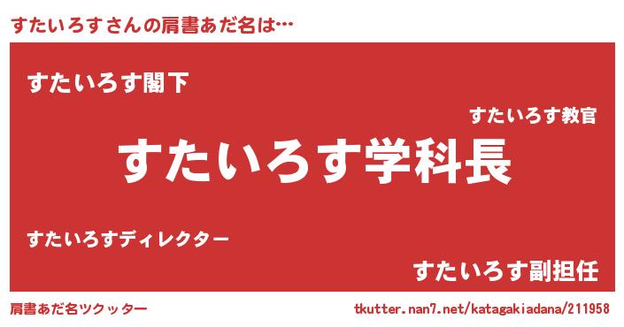 | 男性向けラノベタイトル風あだ名 | 『おまえをオタクにしてやるから、俺をすたいろすにしてくれ! 』 |