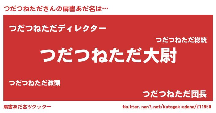 | ヘコむあだ名 | 『つだっ子』『つだつねただ(苦笑)』 |