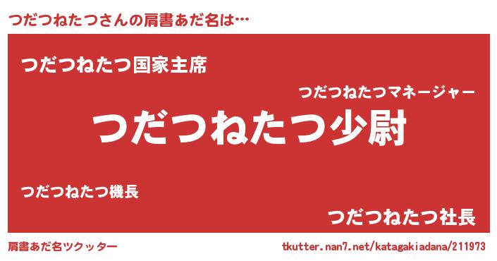 | 料理風あだ名 | 『つだつねたつごはん』 |