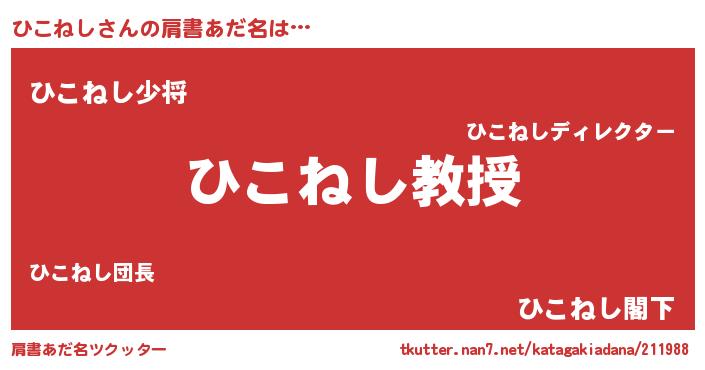 | ヘコむあだ名 | 『ひこお』『レバニラ』『ひこにー』 |