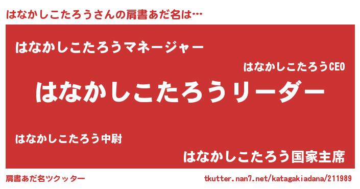 | 意味不明あだ名 | 『とにかく怪しいはなかしこたろう』 |