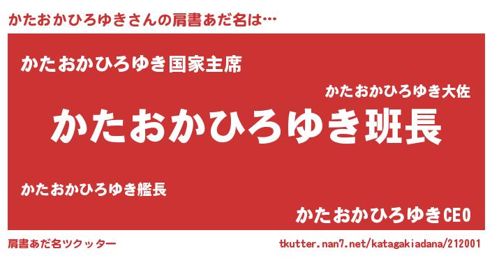 | 男性向けラノベタイトル風あだ名 | 『かたおかひろゆきの嫁は女の子じゃないと思った?』 |