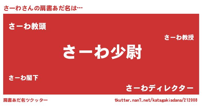 | ヘコむあだ名 | 『さーわ(笑)』『さー太郎』 |