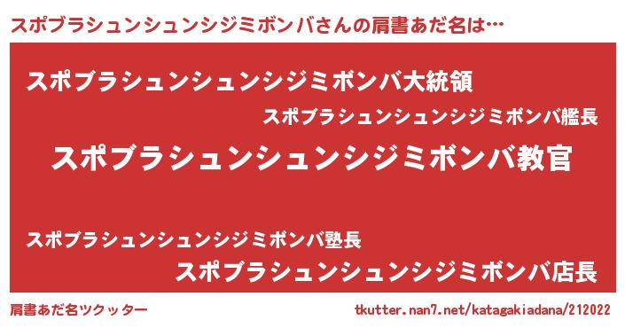 | 意味不明あだ名 | 『住所不定無職スポブラシュンシュンシジミボンバ(5歳)』 |