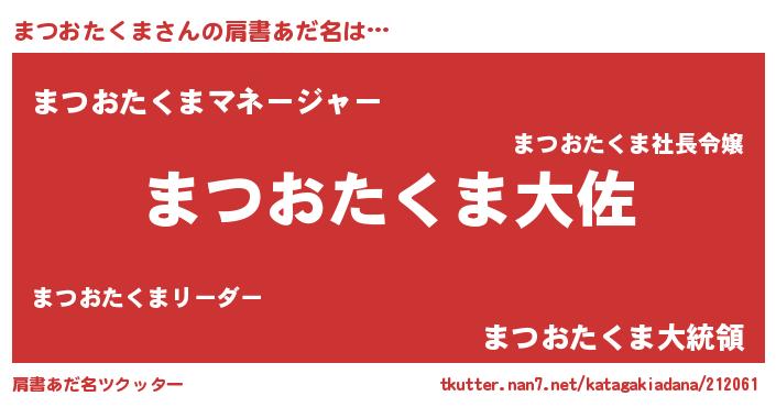 | 男性向けラノベタイトル風あだ名 | 『まつおたくま~年齢イコール彼女いない歴の魔法使い~』 |