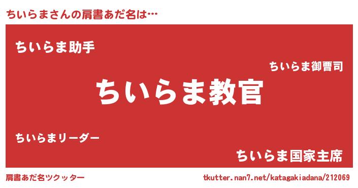 | 意味不明あだ名 | 『住所不定無職ちいらま(2歳)』 |