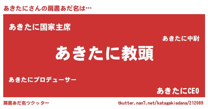 | 意味不明あだ名 | 『永久保存あきたに』『ペロリンあきたに』 |