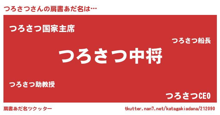 | 男性向けラノベタイトル風あだ名 | 『つろさつ~年齢イコール彼女いない歴の魔法使い~』 |