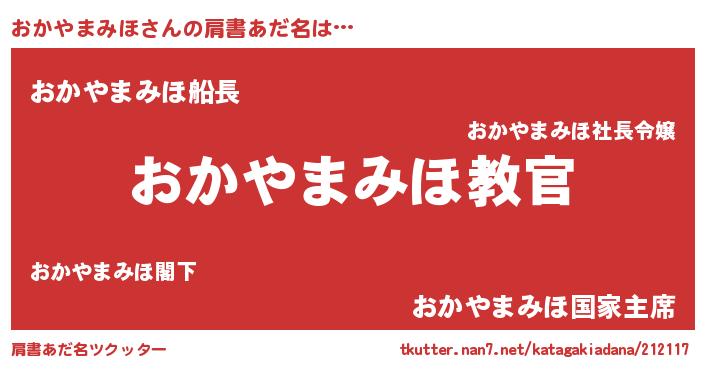 | 男性向けラノベタイトル風あだ名 | 『この素晴らしい世界におかやまみほを!』 |
