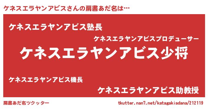 | 男性向けラノベタイトル風あだ名 | 『ケネスエラヤンアビススレイヤー』 |