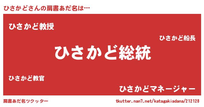 | ヘコむあだ名 | 『ひさかど(遠い目)』『ひさお』 |