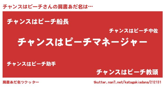 | 意味不明あだ名 | 『永久保存チャンスはピーチ』 |