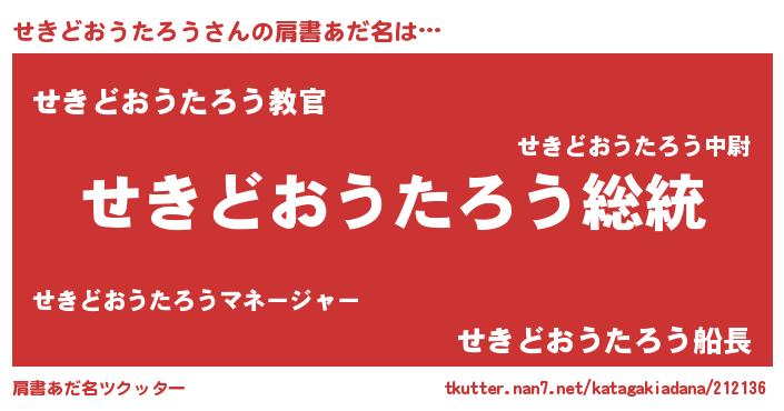 | 意味不明あだ名 | 『自称せきどおうたろう』 |