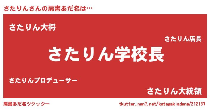 | 料理風あだ名 | 『さたりんのトマト煮』『さたりんごはん』 |