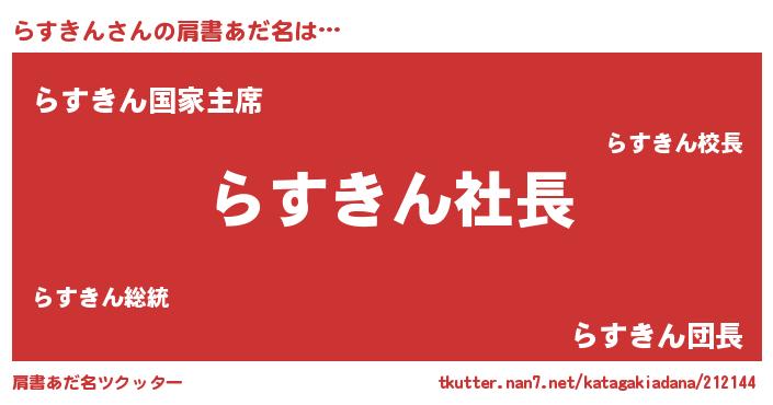 | ヘコむあだ名 | 『らすにー』『なまこ酢』『らすお』 |