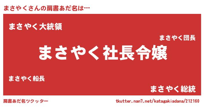 | 女子向けラノベタイトル風あだ名 | 『(仮)まさやくのやんごとなき事情』 |