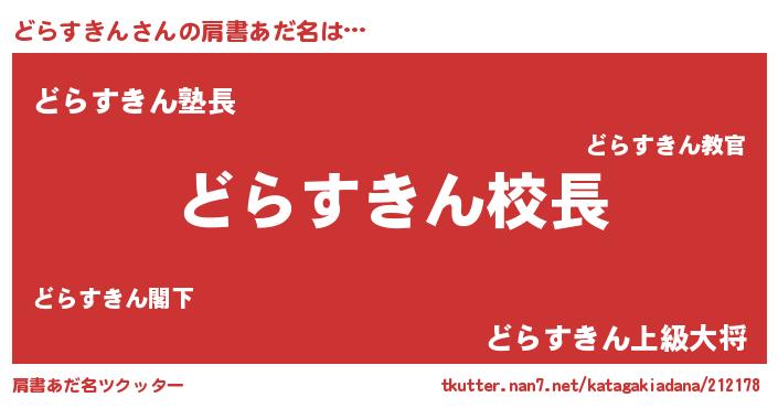 | 意味不明あだ名 | 『永久保存どらすきん』『自称どらすきん』 |
