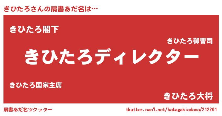 | 男性向けラノベタイトル風あだ名 | 『はたらくきひたろさま!』 |