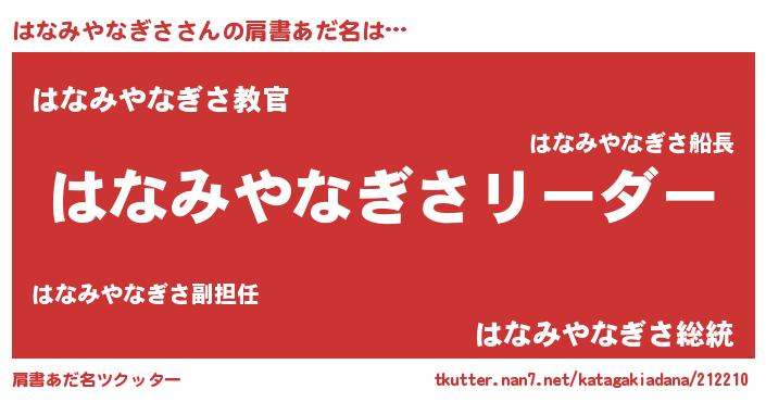 | 胡散臭い通販商品みたいなあだ名 | 『信頼と実績のペンダント…その名も「はなみやなぎさ」』 |