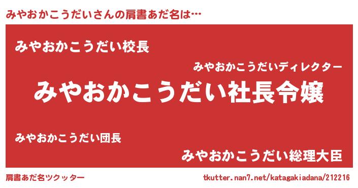 | 男性向けラノベタイトル風あだ名 | 『みやおかこうだいの憂鬱』 |